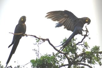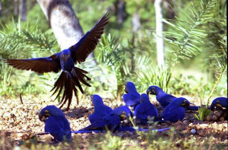 The Spix's Macaw (Cyanopsitta spixii) is the only member of the parrot genus Cyanopsitta. They are critically endangered, possibly extinct in the wild (IUCN 3.1)[1] The species is conserved through several breeding programs. It was found in Brazil, in parts of the Brazilian state of Bahia. It has a very restricted natural habitat due to its dependence on the Caraibeira (Tabebuia aurea) tree for nesting.